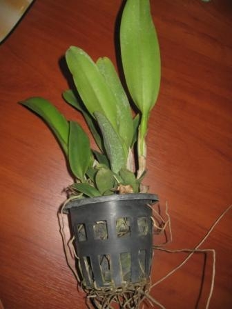 Маленькие листики и бульбочки - уже "старые" - показатель, что каттлея выращена из сеянца.