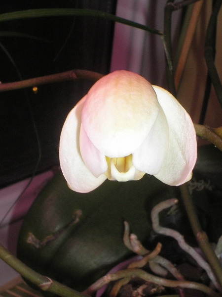 Наконец, последнее. Новелти-фаленопсис должен иметь короткий цветонос. Нет ничего непригляднее зрелища длинного оголенного цветоноса с небольших числом цветков на самом конце. Среднее расстояние от начала цветоноса до первого бутона у новелти-фаленопсиса составляет 10-15 см. Ультракороткий цветонос характеризуется расстоянием до 10 см, а вытянутый - 15-20 см. Как правило, вытянутым цветоносом обладают сорта с короткой родословной, например, Phal.Golden Buddha, Phal.Penang и другие. С каждым поколением селекция, если она ведется в направлении укорачивания цветоноса, снижает указанное расстояние. В отличие от "срезочного" цветоноса стандартных фаленопсисов, цветонос новелти может быть назван "фиалочным".