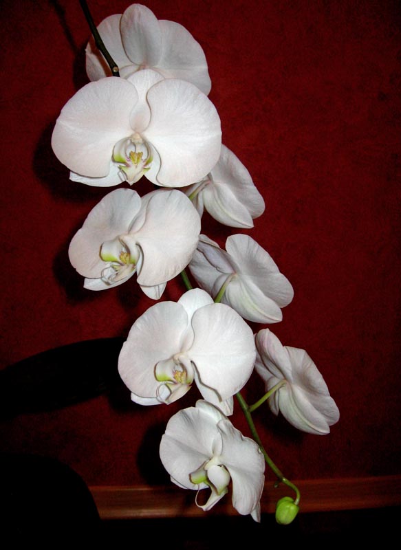 У меня белый с 3 цветоносами, но одновременного цветения такого количества цветов не видела в домашних условиях, обычно они по очереди цветут (на моем, ныне цветущем, было еще 6 цветков, которые уже отцвели, а потом распустились эти, подозреваю, что когда начнут распускаться новые бутоны- те, что сейчас, завянут за день-два).