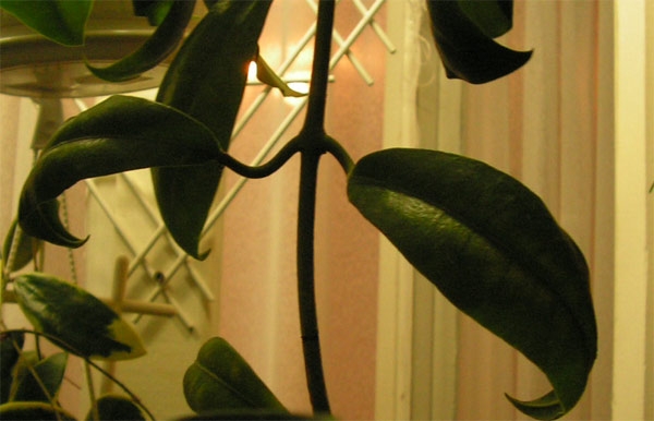 Листья появлялись на свет волнистыми. После обработок новая лиана - просто песня: листья большие, ровные, ярко-зеленые.. Еще б цвела, зараза...