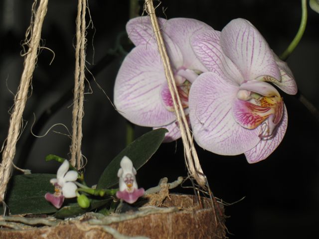 Я его из Тюмени получила. На куске деревяшки, с которой конечно был снят и посажен в супер декоративное кашпо из кокоса. Через год он у меня зацвел. Там вообще то два цветоноса. Если первый долго продержится, то будет пышное Слоно-цветение
