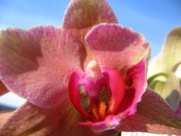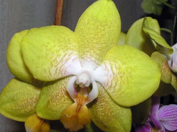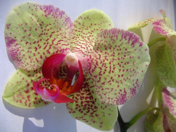 И ещё один чудик - фаленопсис мутировавший, что ли) пелорик, но наполовину) один лепесток пелорический, второй - нормальный) Причёт так на всех 5-и цветах)