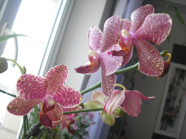 Вот, расцвел у меня фалик. Фото неважное, сорри, никак не получается резкость навести. Цветочков всего два, но это "мое" цветение.