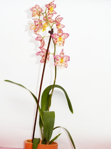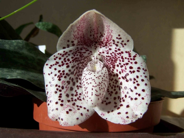 Само растение не крупное, компактное, ризома не длинная, листья тоже не большие. И цветок средний - макс. размер 10-11 см.