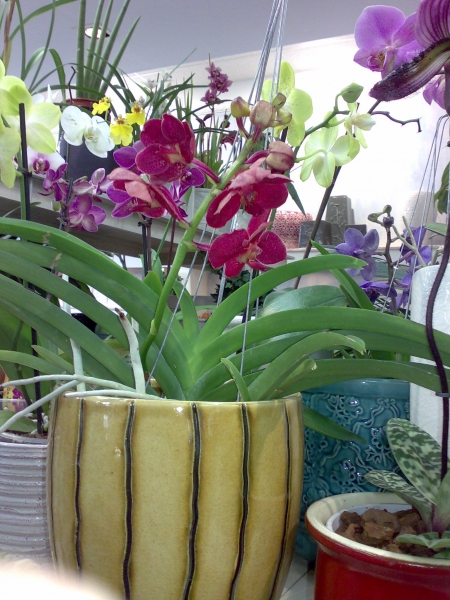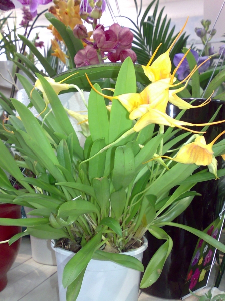 Днепропетровск не балует особым разнообразием орхидей. Можно встретить разные фаленопсисы, камбрии, если цимб или башмачок, то в единичним колличестве, редко бывают каттлейки. Сегодня зашла в новый магазин, в котором - море фаленопсисов самых разных расцветок и размеров, несколько цимбов(розовый,желтый, зеленый), камбрии. Но поразили меня, вернее убили на повал башмаки с крупными бордовыми цветками и масдеваллии - МНОГО -пышные, все усыпанные желтыми цветами. Еще в этом магазине есть эпидендрум и ванды(голубые, оранжевые и кажется бордово-буряковые). Все цветы свежие, еще сохранные. Единственный недостаток - высокие цены.