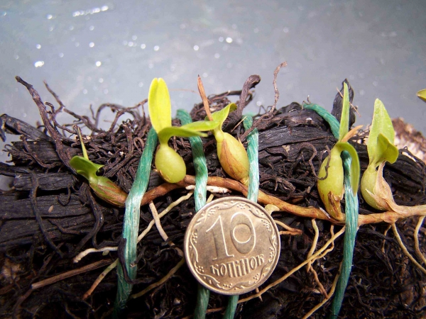 Зверь абсолютно некапризный. Цветет и весной и осенью. Если в Питере ему хватает света для осеннего цветения, то в Киеве и подавно должно хватить. Новый прирост как правило идет с чехлом. На фотографии не видно-на губе еще присутствует гребень. Выглядит растение весьма привлекательно при 1см бульбе с цветком 2.5 см в диаметре.