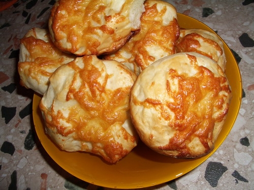 Делала все по рецепту из книжки, которая прилагается к ХП "Делонги", только сыр добавила сразу со всеми ингридиентами, чтобы он хорошо с тестом перемешался, а зелень где-то в середине 2-го замеса.