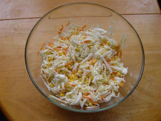Заправить майонезом.