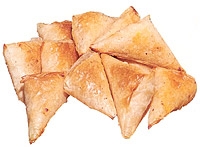 Размять овечий сыр (брынзу) вилкой, добавить сыр "гравьера", петрушку, взбитые яйца и перец. Листы готового теста нарезать на полоски шириной 6 см. и накрыть, чтобы они не высохли. Каждую полоску теста смазать растопленным маслом и положить на край теста одну чайную ложку сырной массы. Завернуть пирожки в виде треугольника. Смазать противень маслом, выложить на него пирожки и печь в духовке приблизительно 15 минут. Готовые пирожки разложить на пергаментной бумаге, чтобы стекли остатки масла.