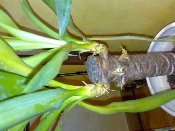 ПС. возле него стоит у меня ещё Юкка. тоже не пересаженная. тоже подарок. ей правда 2 месяца. но она как-то активно сбрасывет листья. вернее они сохнут а отдираю их я. уже маленькие отрпосточки полностью засохли :-((