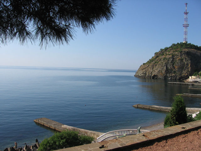 Когда спускаешься на пляж, справа Медведь-гора.