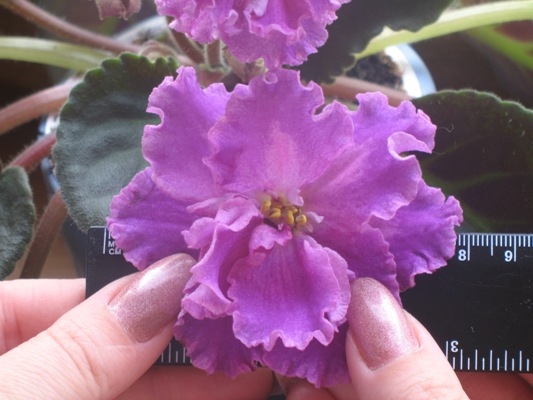 Я очень недовольна, что никак не могу на фото сохранить этот цвет. А то читаешь про некоторые фиалки "пурпурная", а смотришь вживую - ну фиолетовая она, с небольшим красноватым отливом! А тут самый настоящий пурпурный цвет, который очень редко бывает в природе, и нет возможности его запечатлеть.