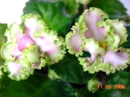 Фиалки, стрепсы и розы с зелёными кружевами.