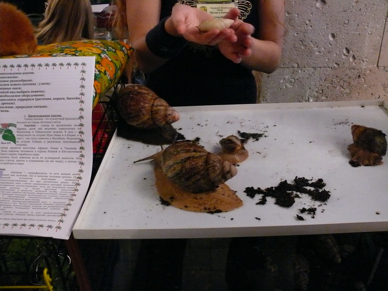 Юлины улитки громадные и производят впечатление здоровых и довольных. Там еще одна женщина была с улитками, но они у нее какие-то жалкие. Навалом валялись в пластике и все время торопились сбежать. Она их едва успевала ловить. Ей-богу, кто бы мог подумать, что улитки рабезгутся!