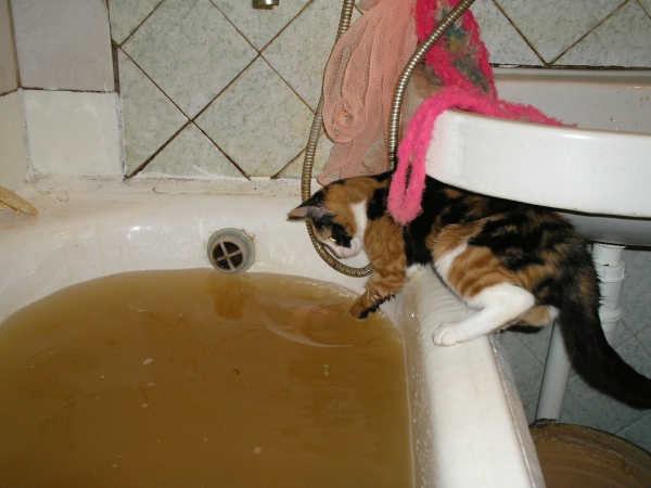 Dana, спасибо Вам огромное. Будем знать теперь на будущее. А вообще у нас такая экология, что и без общения с кошами малыш может родиться болезненным, но это уже другая тема. Но кстати фото будет по поводу экологии, только не пугайтесь. Такая у нас два года назад иногда бывала вода, и как раз тогда, когда надо было купаться.Dana писал(а):Tiana, ИМХО кошка просто пугается незнакомого шумного существа, которое за ней бегает и пытается потрогатьМои, например, не очень любят, когда много гостей в доме и шумно.