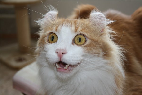 Стильные ушки Американского керла, твердые на ощупь (НУ ПРЯМО РОЖКИ!), кокетливо загнуты назад в плавной дуге и опушены. Модельные ушки придают мордашке удивленное и хитроватое выражение. Американцы подхватили подарок природы (первая кошка этой породы была найдена в Южной Калифорнии в 1981 году) и принялись ее усовершенствовать. Появляются керлы различных окрасов, а также с различной длины шерстью.Длинношерстные керлы имеют нежный, шелковистый волос, не досаждающий владельцам линькой, а короткошерстные поражают неповторимым блеском роскошной шубки.