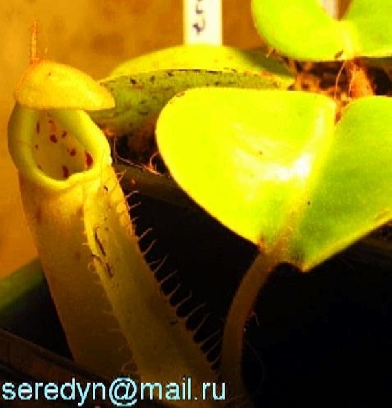 Хотелось бы получить одну консультацию по поводу непентеса,в частности-к какому виду он относиться.У тех которых я видел как правило листья узкие и лишь у края розширяется.У моего лишь у стебля лист тонкий и потом широкий.Кувшины появились только в этом году ,небольшие и имеют вдоль всего кувшина с наружной стороны как бы реснички.