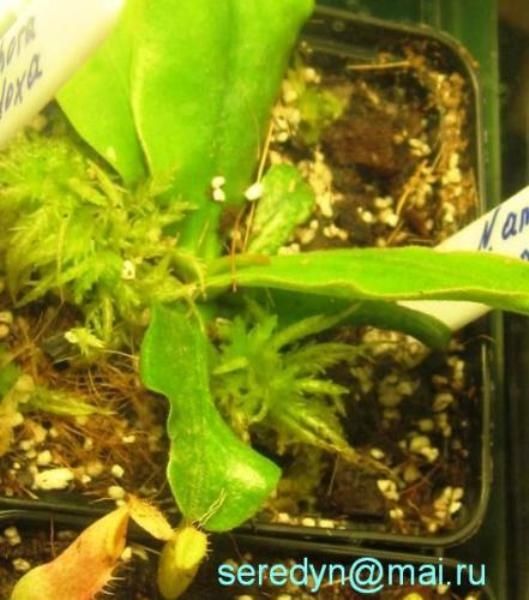 Мой подросший за 4 месяца N. x Miranda (Сват, возможно у вас тоже эта разновидность) Кувшины уже по 13 см. Можно повысить влажность - это приведёт к дальнейшему росту кувшинов: