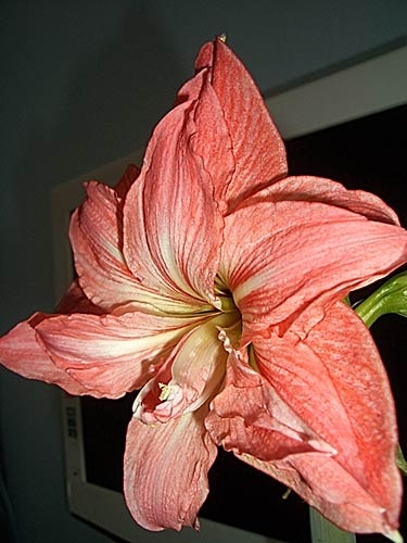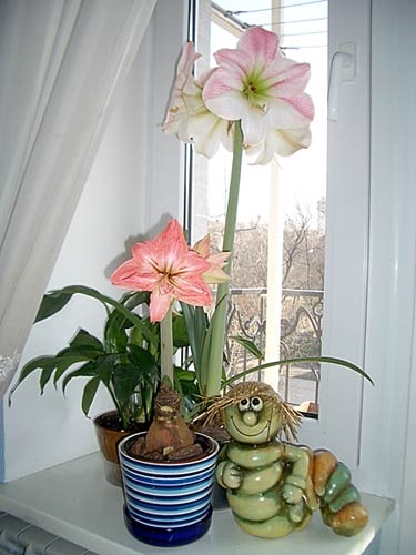 Продавец обещал, что луковица, купленная сегодня, зацветет розовым (цикламеновым) цветом. Посмотрим! Потому что яблоневый цвет покупался как белый махровый.