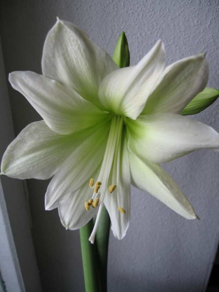 Открываю сезон цветения гиппов. Расцвел Мун Лайт, милый цветуечек, небольшой и невысокая стрелка, скорее было-зеленый, желтого, как на картинке нет и в помине.