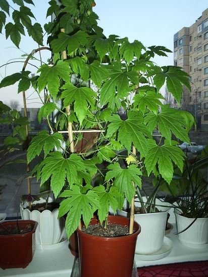 очень похоже на мамордику,очень красивые семена,похожи на плоские бусинки.Может давать плоды -оранжевые типа,огурцы.Еще зовут индийский гранат или огурец тоже индийский.