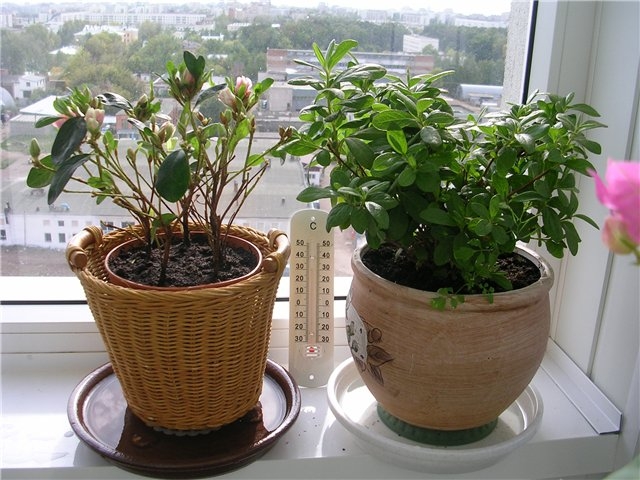 для такой нежной азалийки- кошка все цветы валяет и грызет, да и места нет, окошко ведь маленькое и подоконник очень узкий и как раз под ним батарея