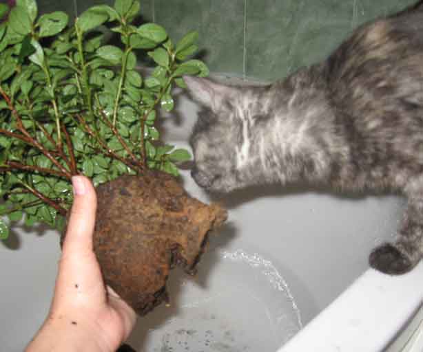Чем дальше, тем больше выдно было корней и меньше субстрата. Но чем дальше, там все тяжелее и тяжелее было его распутывать. А еще очень неприятно было то, что брызги от напора воды летели во все стороны и если б я не делала это почти совсем голой, то вещи б наверное промокли на сквозь $:073 Вода еще и не особо теплая постоянно капала на спину и из-за этого она постоянно чесалась, а я грязными и мокрыми руками ее без конца чухала :mrgreen: Капец короче... $:026