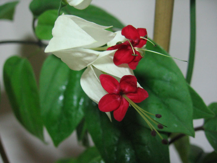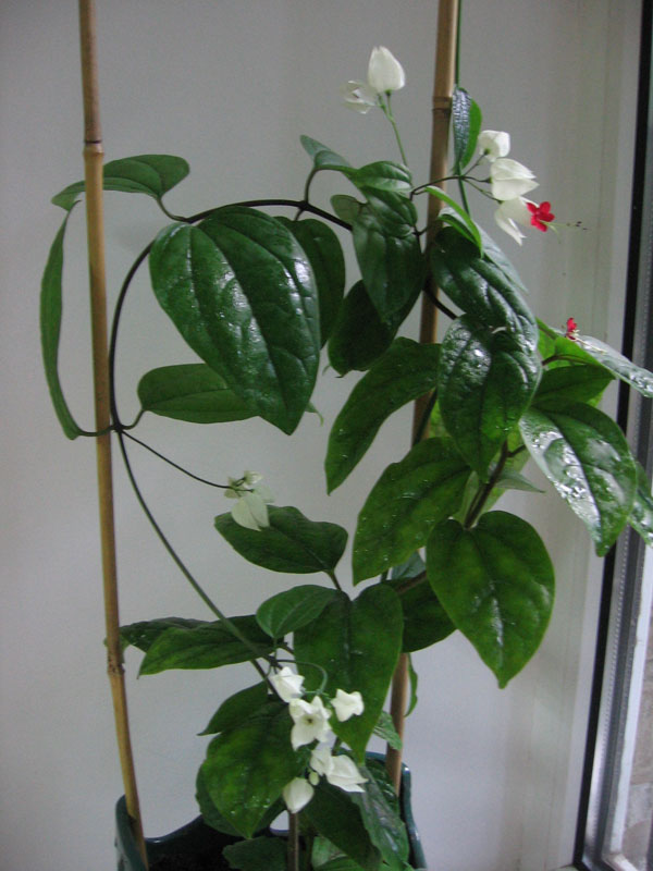 Очень легко и быстро даёт корешки просто в воде.Корневая система мощная,но большой ёмкостью баловать не стОит-гонит плети,а не крупный лист. Ещё нравится,что после отпадания красных цветков,прицветники держатся ОЧЕНЬ долго,красивые,как китайские фонарики,и становятся со временем из белоснежных лиловыми. У меня завязывались семена,тоже интересные-красно-синие неравнобокие ягодки.