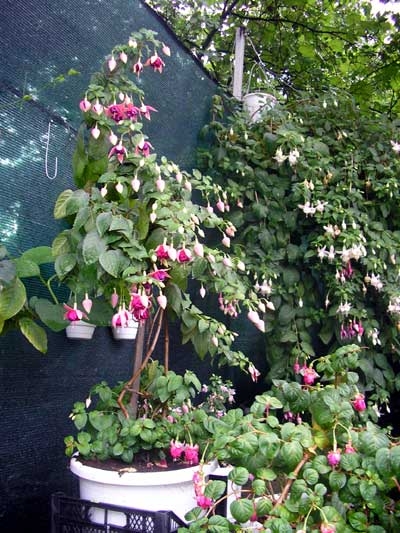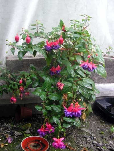 При пересадке больших черенков, рекомендую хорошую подрезку. На молодых ветках оставлять не более 3 пар листьев. Это поможет развитию корневой системы, снизит стресс и улучшит "кустистость". Отрезанные черенки по 10-15 см. можно дополнительно укоренить и досадить позже к основному кусту. Оптимально в среднем для ампелей 5 черенков на горшок, для кустовых -3.
