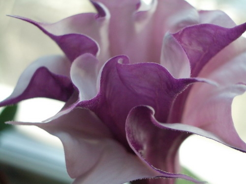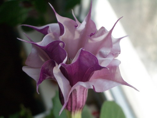 Я каждый год высеваю белый дурман на даче.Растет.Но он же однолетний.А в прошлом году купила на рынке бругмансию желтую и розовую- так одна уже лошадь, а другая "жеребенок".Я так понимаю, что первые от вторых отличаются тем, что у дурмана цветок направлен вверх, а у бругмансии поникший?Только мне кажется это не совсем комнатное растение.Зимует в "непразничном" виде, а летом ему простора, солнышка нужно.А где его взять для слона метрового?