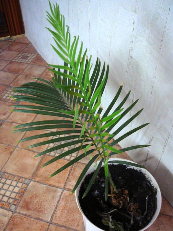 Есть у меня в хозяйстве пальмочка. Досталась она мне лет пять назад в ужасном состоянии с двумя малюпусенькими листиками. Мы тогда ее пересадили, холили, лелеяли - через год вырос один большой лист (или ветка-не знаю как правильно назвать). Ну обрадовались - процесс пошел. Да не тут-то было. Старые листики вскоре отвалились, а время от времени стали вылазить новые. НО - они засыхают!!! Что я только не делал - менял окна, поливал, не поливал, исключил неорганические удобрения, удобрял навозом,еще раз пересадил, не дышал - все напрасно. Регулярно начинает вылизить новый лист, разворачивается - и засыхает. Вот и имею один лист пятилетней давности и периодически пропадающие новые.