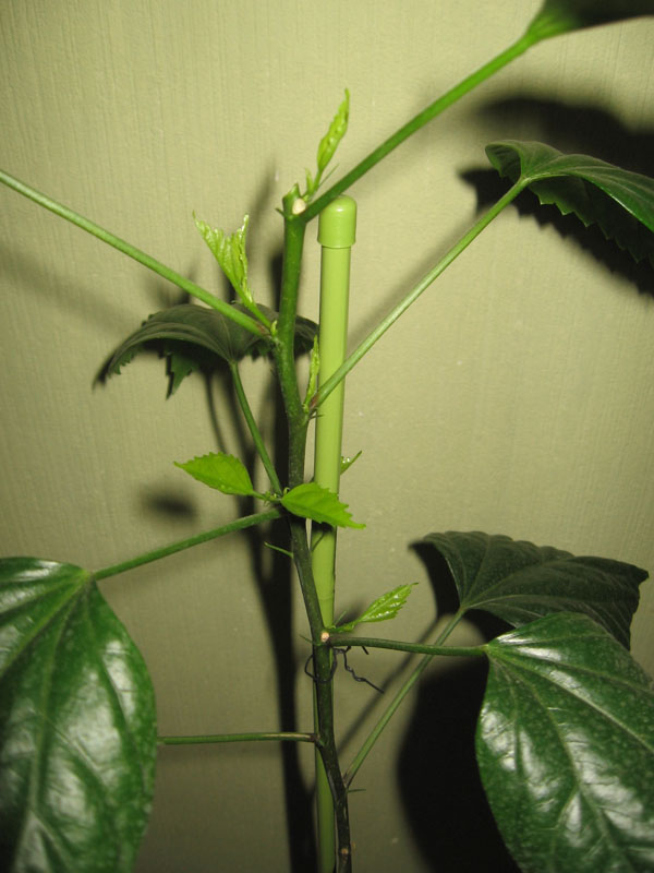 У меня ситуация с гибискусом похожая была - я решила сделать деревце не сразу, а когда растень вымахал большой и кустился только снизу. Я обрезала нижние большие и маленькие, оставив верхушку, которая уже была обрезана и было 2 ветки, растущие в одну сторону. Какое то время я их не обрезала, так как были бутоны, причем после первой волны цветения пошла вторая волна, но бутоны опали. В результате этого ровный ствол искривился дугой, палка для выравнивания не помогла. Теперь вот обрезала длинные ветки, чтобы уменьшить нагрузку, пошли новые ветки в противоположную, но стебель кривой. Сможет ли он или уже нет? В целом мой гибиск очень похож на гибиск из последнего фото (за исключеним стебля).