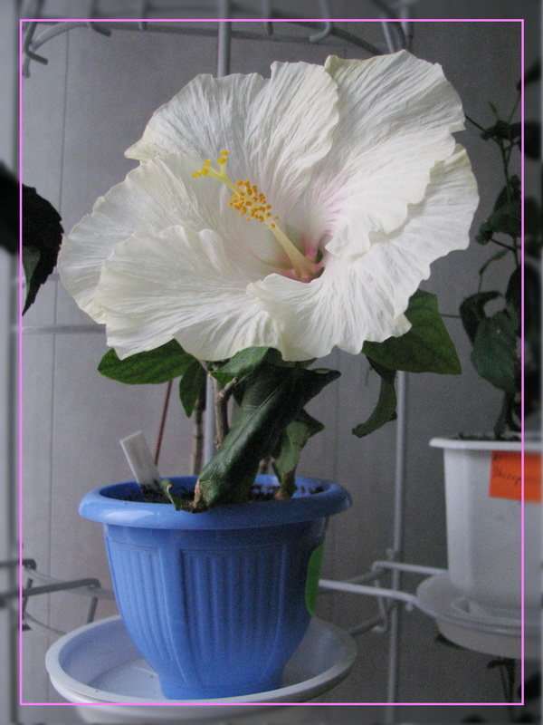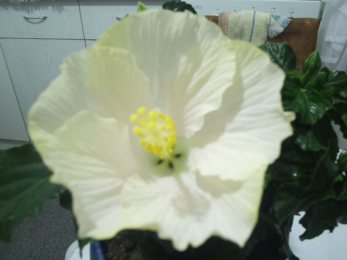 Такой крупный! Из-за цветка самого растения не видно! И сначала такой желтенький был, а потом такой снежок,