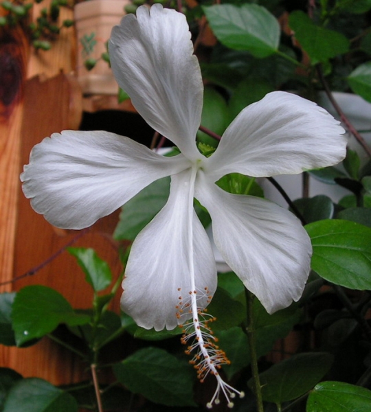 А вот такой у меня гибискус на даче. Первые цветки были величиной с большую тарелку. Следующие - чуть меньше. Но все равно размер впечатляет.