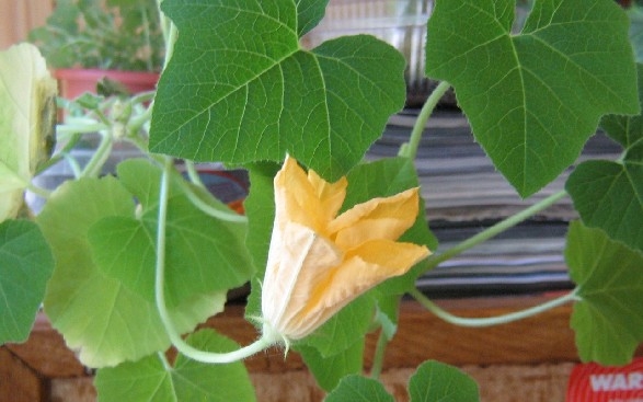 А я с дачи примчалась, а на балконе (там где рассада) сплошные джунгли. Конечно, в балконных ящиках, подвешенных снаружи все это смотрелось бы красивее, а так все в одной куче на столе. Все переплелось - гибискус, бегония ампельная (цветет только оранжевая, остальные - сачкуют), чернобрывци, бальзамины и всяка мелочь.