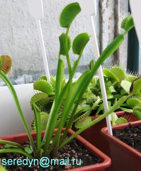 На фото некоторые мои Венеры : типичная Dionaea muscipula, Dionaea muscipula сорт " Yellow" , Dionaea muscipula 'Giant Big Mouth' в пасти которой помещается половина указательного пальца $:021