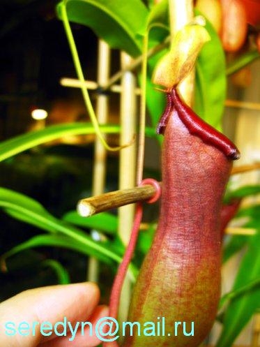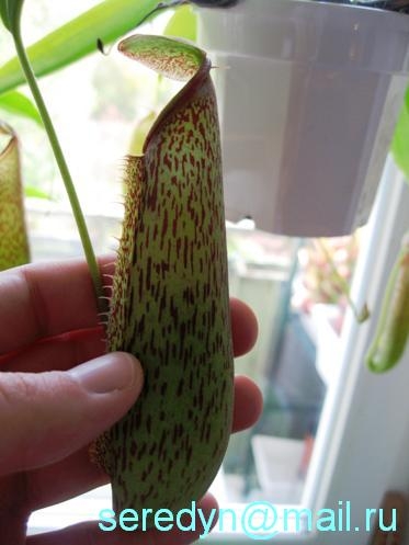 Мой подросший за 4 месяца N. x Miranda (Сват, возможно у вас тоже эта разновидность) Кувшины уже по 13 см. Можно повысить влажность - это приведёт к дальнейшему росту кувшинов: