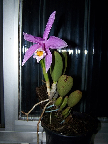 У меня с прошлой зимы живет лелия пурпурата. По условиям содержания она у меня отнесена к фаленопсисовым орхам, то есть к тем, которые к себе внимания не требуют. Приехала из Германии крепким растением с несколькими бульбами в горшке с прекрасными живыми корнями, за лето выростила здоровенный двухлистовый рост( сама лелия однолистная), который в полтора раза больше всех предыдущих и теперь все время перекидывает горшок. Про цветение ничего неговорит, хотя может это связано с перенесенным стрессом от переезда и пересадки.