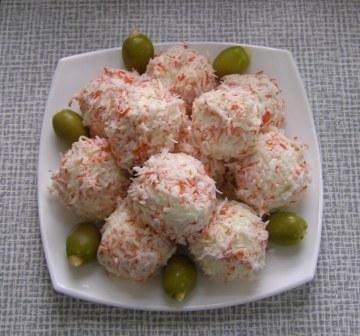 3. Вместо "крабочек" лучше брать крабовое мясо - все равно тереть на терке, так хоть целофан с каждой сковыривать не надо.