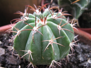 Botan1k, первый - орнатум - у Вас же есть такой (Вы фотку выкладывали в теме о фотографиях астрофитумов), только тот постарше - у него уже начало проявляться орнаментальное расположение крапа. А этот еще молодой - крап равномерный. Цвет колючек у орнатумов тоже может варьировать от белого до черного.