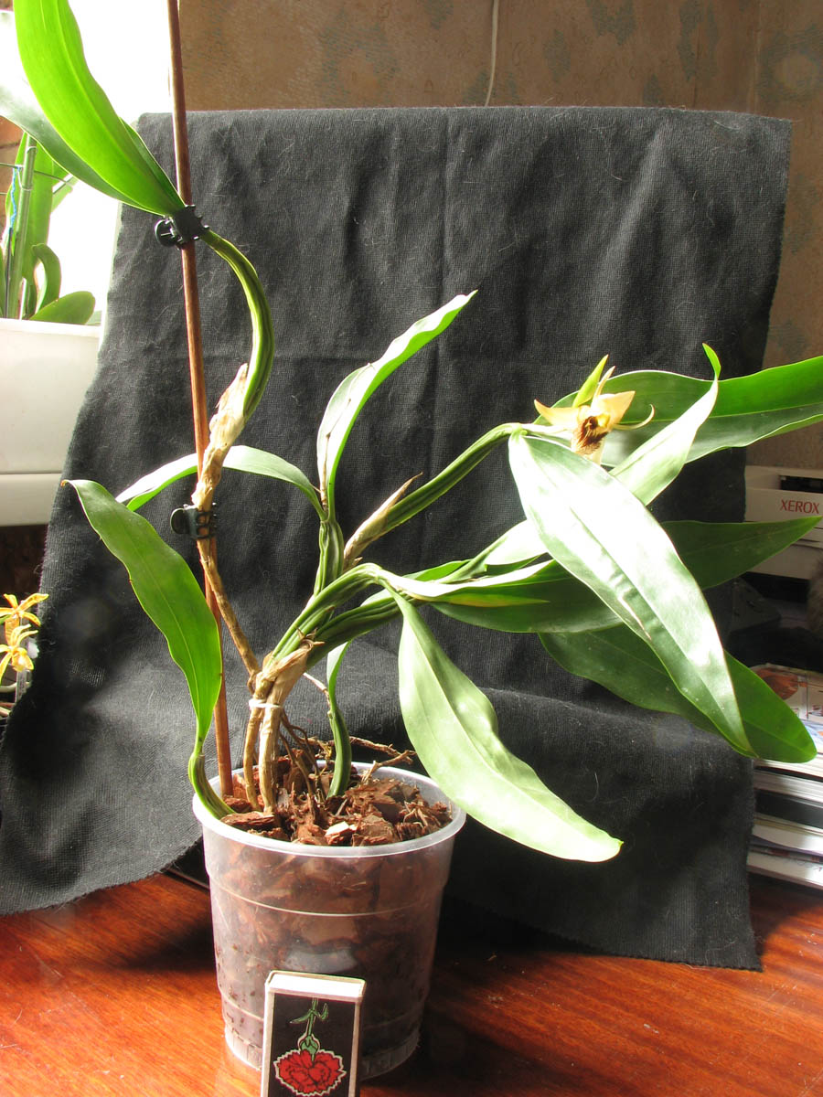 Отцветает орхидея Encyclia bracteata. Пришла с тремя большими бутонами, два сбросила. Правда на цветоносах растит новые бутоны.