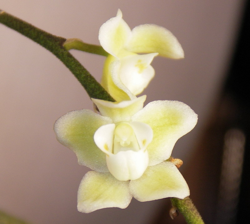 Chiloschista Segawai пришла с цветоносом и сейчас цветет.