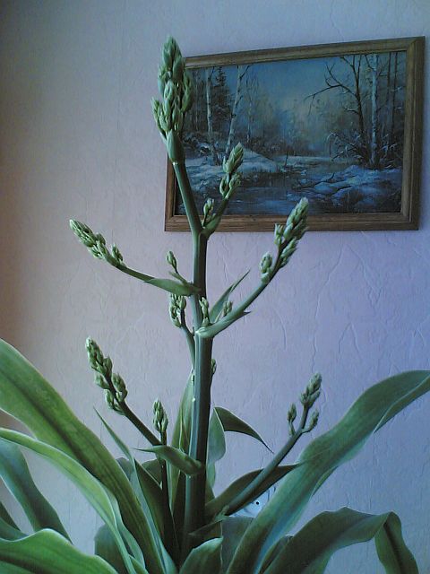 Наташа, это у Вас юка. В зрелом возрасте цветет каждый год. Какая ее высота??? Моя тоже в прошлом году цвела и сейчас выбросила цветонос. Однако при цветении моя дурно пахнет. Не переживайте с ней ничего плохого не случится!!!