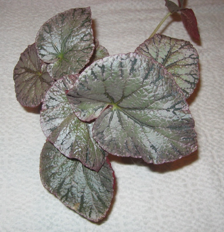 У моей бегонии rex красные листья появляються только на свету. Вот гляньте на фото. Всю зиму и весну простояла на западном окне на прямом солнечном свете и появлялись красные листики, а переставила подальше - пошли листики зеленые.