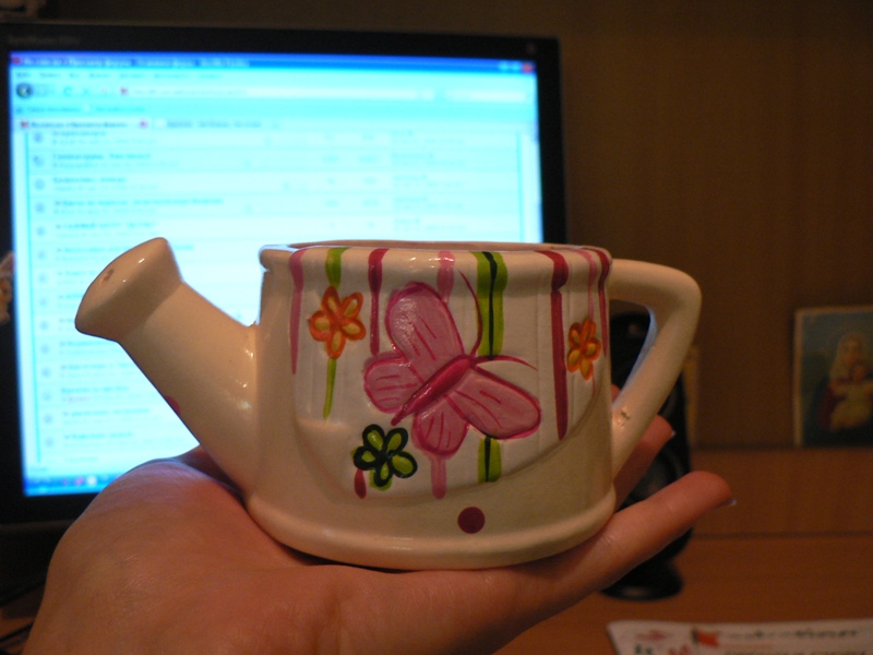 А я такой аксессуарчик прикупила себе во Львове в качестве сувенирчика - вообще, натуральная поливалочка, даже поливать можно! Но конечно симпатичней в качестве кашпо