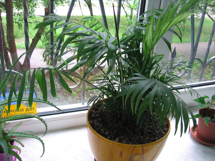 Хамедорея у меня стоит рядом с сансевьерой. В не особо светлом углу ванной комнаты. Ей главное влажность чуть повысить. Я свою брызгаю 1-2 раза в день. Полив лучше чередовать раз сверху, раз через поддон. А еще я немного керамзита положила на земельку сверху. Лишние соли керамзит на себя частично берет и тогда нет на земле таких белых налетов от жесткой воды. Svitlyk, видать она у Вас поливается той же жесткой водичкой, которой Ваш цикас раньше поливался. так что бросьте немного керамзита сверху, водичку лучше через фильтр перегнать и не заливать особо растюху. Ей нужна влажная земля, но не заливы.