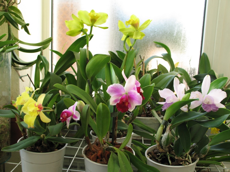 Симпатяшно желтенькое - это катлейка с магазина, процвела с трех ростов и одновременно гонит четыре новых, пахнет слабенько. Была еще голубая, та пахла гораздо сильней. А Ванды, это тоже с базы, покупала вообще задохликами по уценке, одна таки