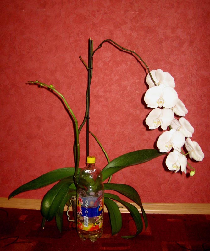 Вот растень в полный рост (бутылка стоит потому, что горшок переворачивается от перевеса цвоноса ну и для наглядности размера)