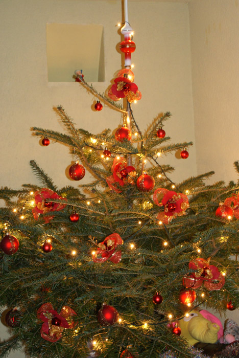 Тэ-э-кс! С этого момента поподробнее. Что это за стильные красные штучки на елке? Откедова дровишки?Cleo писал(а):А вот моя елочка
