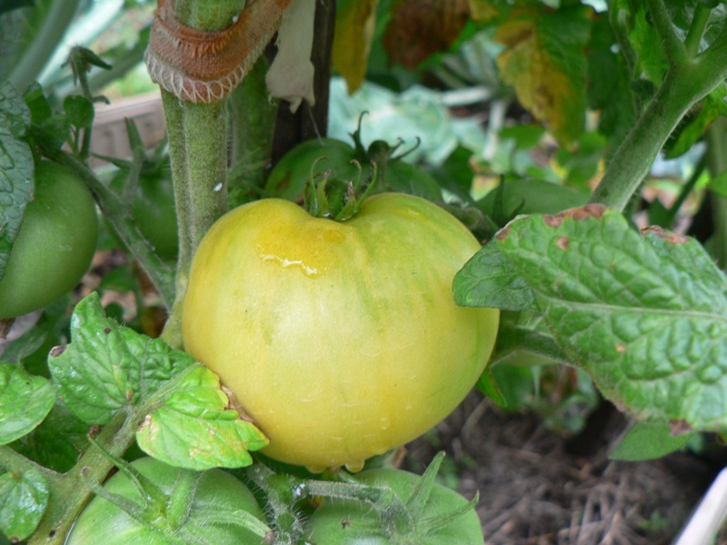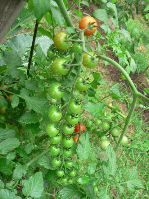 Вот обещанные фотки помидосиков, жалко, что зеленые, не вызрели в том году, поздно посадила, а осень задождила сильно...